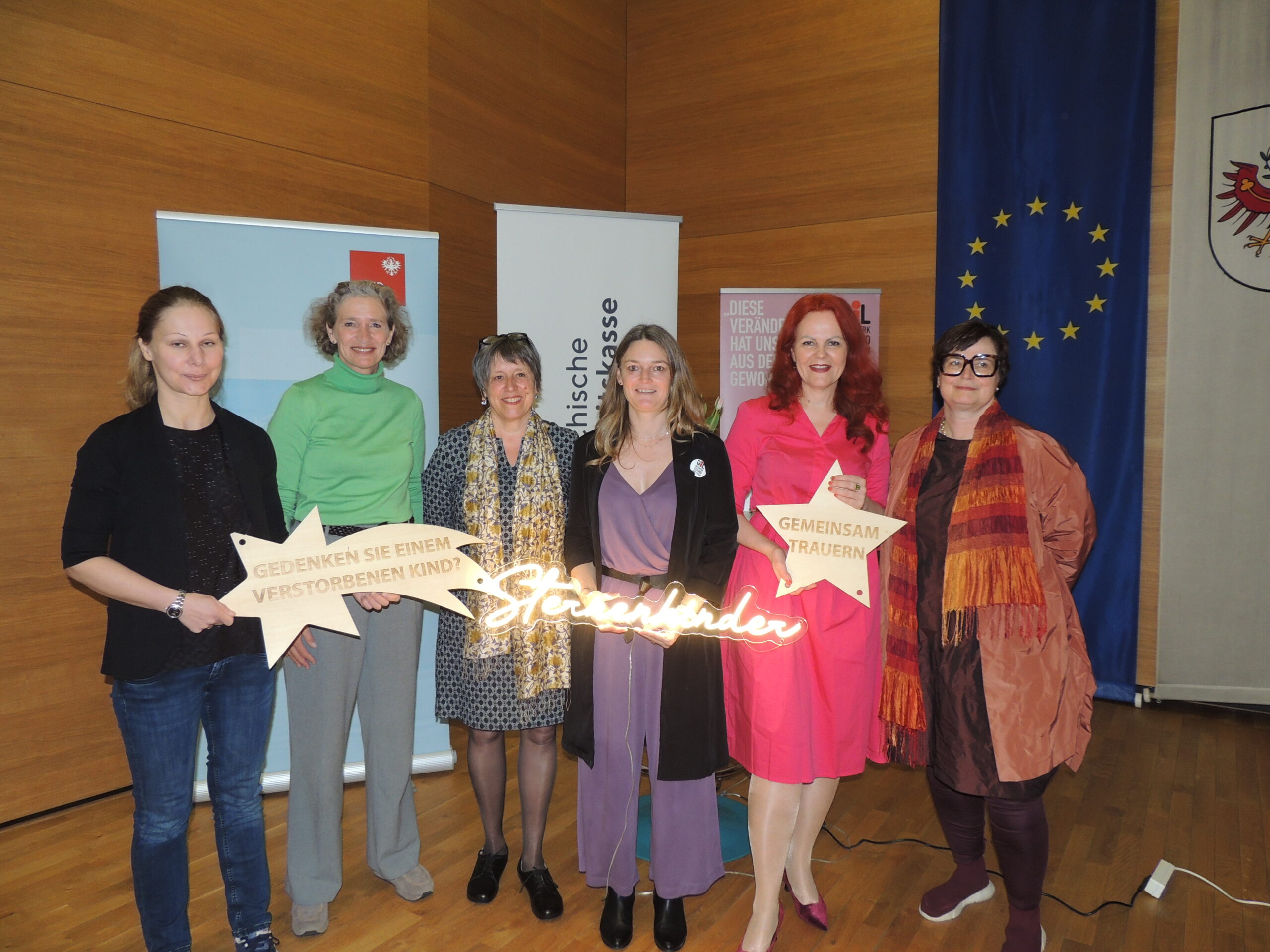 Foto: GiL: Fachtagung zum Thema Sternenkinder mit v. l. Dr.in Susanne Sprung, Dr.in Franziska Offermann, Mauerer, MSc, Mag.a Sandra Aufhammer, LR MMag.a Dr.in Cornelia Hagele, Dr.in Alexandra Ciresa-König