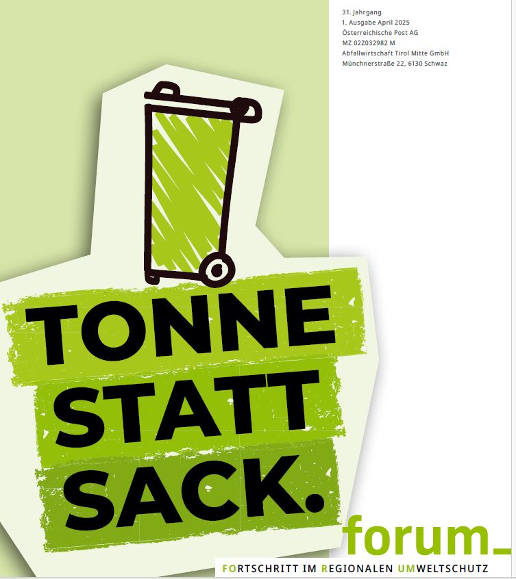 Im druckfrischen FORUM – dem Magazin der ATM-Abfallwirtschaft Tirol Mitte – ist es nachzulesen: Immer mehr Gemeinden steigen vom Sack auf die Tonne um. Als Redaktionsteam haben wir mit den Bürgermeisterinnen und Bürgermeistern gesprochen, welche Vorteile die Verwiegung bringt und welche Learnings im Umstellungsprozess gemacht wurden. Sechs Gemeinden berichten von ihren Erfahrungen … – und außerdem gibts wieder viel Neues rund um die Tiroler Abfallwirtschaft.
